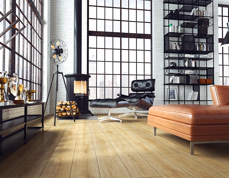 Водостойкий ламинат Kronopol Aurum Symfonia Aqua Zero Дуб Виво, 33-й класс, толщиной 12 мм, декор бежевого оттенка с текстурой под натуральный дуб.