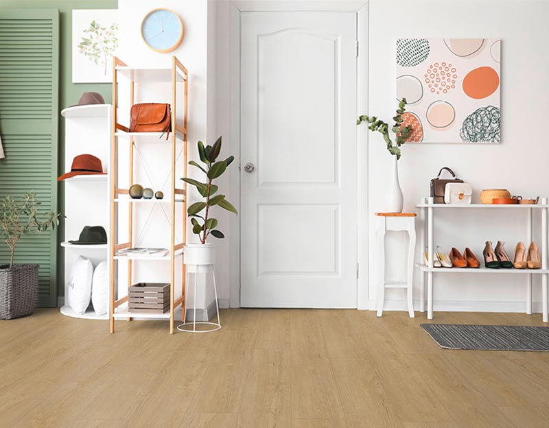 Влагостойкий ламинат Rooms Penthouse Дуб Горизонт натуральный 33-класс, толщиной 12 мм, декор золотисто-коричневого оттенка с текстурой под дуб.